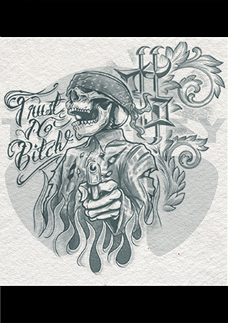 Create a realistic look when using this “Trust No Bitch Chest” tattoo.  Use this tattoo anywhere on the body but recommended for the abdomen or back. Group it with another gangsta temporary tattoo and create your character.